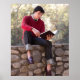 Student vid läsning av Bok och Sitta om stenvägg Poster