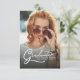 Photo Studenten 2022 Modern Script Grad Party-inbjudan kan du enkelt redigera genom att lägga till party-detaljer och foton från graden på framsidan och baksidan.