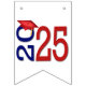 GRATULERAR 2025 i blå och röd färg på vitt. Bakgrundsinformation om färg kan ändras.