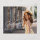 Vår elegant 2025-studenten-kungörelse innehåller två foton av högskolan eller högskolan student. Avslappnad, modernt vitt skript visas på ett överlägg tillsammans med ett foto av student på framsidan och baksidan. Ändra enkelt texten på baksidan och framsidan av kortet så att det antingen blir ett enkelt tillkännagivande i studenten eller en gradpartsinbjudan. En snyggt och enkel studenten-design för 2025 års klass!