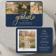 Studenten 4 Photo Collage Script Blue Guld annonscertifikat. Anpassa detta enkelt genom att ändra texten och ersätta bilderna med dina. Ett modernt och trenderare sätt att tillkännage er studenten i år!