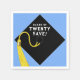 Kreativets blöjor för studentfest för klass 25 grader med rolig linje och klassisk svart studentmössa med guld tassel på ljusblå bakgrund.