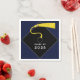Kreativets blöjor för studentfest för klass 25 grader med rolig linje och klassisk svart studentmössa med guld-tassel på marin blå bakgrund.