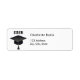 En svart studentmössa. Anpassa och lägg till ditt namn, adress, år. Vit bakgrund, svart brev.