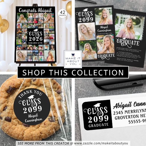 Fira din student-bedrift med den här visningen för fotominnen i studenten poster utskrift med hjälp av den här lättöverförbara fotosamlingsmallen med 35 kvadratmeter bilder under åren till vid studentfesten eller för att hedra minnet. Utformningen har en modern typografititel för KLASS AV ÅR STUDENT och personlig med namn. All text, grafik med grafik med grafik och bakgrundsbild i färg kan ändras till färg i skolan eller samordnas med party temat färg. Den här poster är också tillgänglig som en digital filhämtning för utskrift lokalt eller för delning av digitalt online. ALTERNATIV: Provet visas i en 23x30-tums storlek på Value-Papper (projektionsyta). Andra utskriftsstorlekar av standardtyp och anpassningsbar, papper kvalitet och framtagning, Digital Download-fil för utskrift lokalt eller överföring av designen till ett skum, en banner, en arbetsyta eller andra produktalternativ finns tillgängliga på beställningssidan. ÄNDRA TIPS: Välj Anpassningsbar Storlek för jämna gräns genom att ändra höjd och bredd proportionellt efter att du har klickat på ikonen UNLOCK (liknar en kedjelänk). ASSISTANS: Om du vill ha hjälp med designändringar eller anpassning, ändra storlek på eller överföra designen i färg, kontaktar du designern INNAN ORDERING sker via Chattan Zazzle MESSAGE eller e-post makeitaboutyoustore@gmail.com.