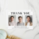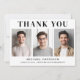 Modern studenten tackar dig för ett kort med tre foton över mitten, "Tack" i elegant, och gradens namn, skolår och klassår i enkel typografi. Anpassa ditt tackmeddelande på baksidan och lägg till ditt namn i ett namnteckning skript.