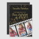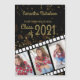 Klass 2021 (eller vilket år som helst) studenten-annonsmagnet med 3 foton på en filmremskonstruktion sitta på en svart bakgrund med glittery guld bokeh.