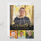 Modern fotoinbjudan till studentfesten med 4 bilder på framsidan med en handskriven STUDENT-rubrik för guld-penseldrag på framsidan och PARTY på baksidan med information om din studentfest-inbjudan. ASSISTANS: Om du vill ha hjälp med designändringar eller anpassning, ändra storlek på eller överföra designen i färg, kontaktar du designern INNAN ORDERING sker via Chattan Zazzle MESSAGE eller e-post makeitaboutyoustore@gmail.com.