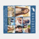 Elegant, klassisk blå studenten keepsakfilt för student, med "STUDENT" överst i stor vit typografi bredvid en vit illustration av en studentmössa, en sju fotokollage och hans eller hennes namn, klassår och skola i modern vit typografi.