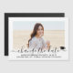 Om oväntade omständigheter har lett till att din studentfest har skjutits upp eller ställts in, informera familj och vänner om förändringen i planerna med denna enkla moderna minimalistiska spara om det nya datumet för magnetiska inbjudningar. Text är enkel att anpassa för att inkludera information om student namn, klassår, skola eller andra evenemang. (IMAGE PLACEMENT TIP: Ett enkelt sätt att centrera ett foto exakt som du vill är att flytta det till skörd innan du laddar upp det till Zazzle-webbplatsen.) Designen innehåller handskrivet stil-skriptkalligrafi, snyggt vintage art deco-inspirerad typografi och 1 foto efter eget val, t.ex. ett överordnat bild eller en bild från startceremonin. Det här studenten-annonskortet i elegant är ett trendig och en chic sätt att börja med er speciella dag firande och till inbjudan gäster för att spara det nya omschemalagda datumet. Grattisar till student!