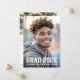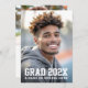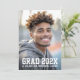 Studenten-meddelande med ditt foto och texten "grad" och ditt år i ett idrottsteckensnitt med ditt namn eller din skola nedan. Ytterligare foto- och anpassningsbar på baksidan. Svart text på vit bakgrund.