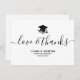 Skicka ett modernt tackkort till din familj och vänner för din studenten. Den här utformningen illustrerar en studentmössa och ett diplom på framsidan med ett modernt skript som läser. "Kärlek & Tack" i svart typografi med ditt namn, din skola och din klass/år. Kortets baksida har ett meddelande som du kan anpassa eller ta bort. Designad av konstnären ©Susan Coffey.