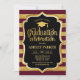 Studentfest bjuder in för manar eller kvinnor. Elegant inbjudan-kort i burgiga sjön, svart och guld. Modern enkel design med rand, en sockel, faux glitter guld och typsnitt för typsnitt. Perfekt för en snyggt studenten firande.