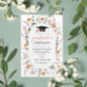 Färga vilda blommor ram är en rosa och svart studenten-hatt för en ceremoniinbjudan till studenten med anpassningsbar-typografi på rosa och svart.