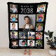 Den svarta filten i studenten, som innehåller 15 fotokollage av student genom skolåren och namn i ett snyggt vitt skript. Lägg till personligens bildtexter under varje foto.
