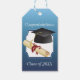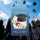 Jag gratulerar studenter. Mortarboard och diploma med redigerbar text på blå bakgrund.