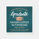 Lägg till en personlig i eleganten till dekorationer på högskolenivå eller studentfest i högskolenivå med pappra blöjor av anpassningsbar, vitt och koppar. All text är enkel att anpassa. Utformningen har en blå grönt, en faux foil mortar board-förslutning, snyggt modern typografi och handskriven kalligrafi för stil-skript. Observera att koppar är tryckt teracotta färg, inte metallfolie. Grattisar till student!