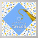 Kreativ studenten gratulerara party poster, med ljusblått lock med guld-tassel på konetti-bakgrund. Om du vill anpassa texten lägger du till namn och det överordnade klassåret.
