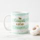 Gratulera till Student med detta festliga mugg med en roligt, trendig mint grönt och vit strimlad bakgrund och anpassningsbar, accentuerad med faux guld glittery konetti och ett guld Grad-lock. Perfekt för en party-gåva med högskoleexamen eller högskoleexamen.