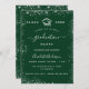En modern inbjudan till studentfest av elegant. En grönt bakgrund som dekoreras med faux silver glitter, gnistor. Anpassa och lägg till namn, år och detaljer.