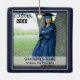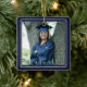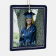 Den här minneshögtiden för keramiska prydnadsföremål innehåller två foton av student och omfattar namn, skola och studenten. Gör en tänkbar gåva till student. OBS! NAVY BLUE-bakgrunden färg kan ändras genom att klicka på fliken CUSTOMIZE. Silver faux glitter gräns accentuerar mest hela färg i skolan. Teckensnittet stil/färg/storlek/placering kan också ändras. PHOTO/IMAGE TIP: För snabbaste/bästa resultat väljer du ett foto med subjekt i mitten och/eller förmontera fotot i kvadratisk form före uppladdning och fyller det bildutrymme som finns perfekt.