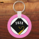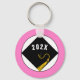 Studentmössa med guld tassel-design på rosa bakgrund. Redigera text om du vill ändra det överordnade klassåret.