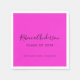 En enkel studenten-napkin med minimal design på en ljus rosa bakgrund. Namn förekommer i den populära handskrivna texten från stil och i den tydliga texten för studieåret och skolan.