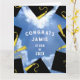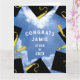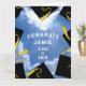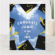 Kreativ-studenten-kort för klass 25 grader med svarta och guld-studentmössor på blå himmel bakgrund. Om du vill anpassa redigeringstexten till att lägga till namn och det överordnade klassåret.