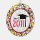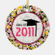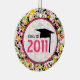 En studentenprydnad som presenterar en rosa, grönt, gult och svarten målar splatterbakgrund. Planlägg inre rent cirklar skisserat i rosor läser "klassificerar av 2011" och särdrag en studentmössa.