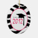 En studentenprydnad som presenterar en zebra tryckbakgrund. Designinsida cirklar skisserat i rosor läser "klassificerar av 2012" och särdrag en studentmössa.