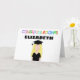 Illustration av kvinnligt student med färgstark text som lyder "Grattisar"!