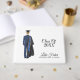 Vattenfärgsillustrationer i studenten med ung man i blå kostym / grå och hatt. Redigerbara textmallar för att lägga till egna skolor, namn och år.