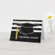 Fira med det nya student med detta svarta och vita strimlade kort. En stor svart studentmössa är i mitten med en gulaktig guld-tassel. Konfetti faller. Underbart kort för att önska grattisarna i student. Perfekt för kille eller tjej.