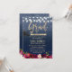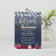 Modern Burgundy Red Blommigt Navy Blue Glitter Studentfest-inbjudan.