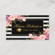 Studenten Networking Rosa Blommigt Guld Stripe Visitkort