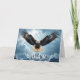 Ett örn med utdraget vingar flyger på ett bra sätt över en rad berg som täcks av snö med texten SOAR. Text kan redigeras.