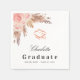 För en elegant och en modern studentfest. Vit bakgrund. Dekorerat med ro guld, rosa blommigtar, pampasgräs, en abstrakt. Anpassa och lägg till ett namn och ett år.