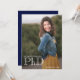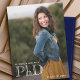Ett foto PhD studenten-meddelande som innehåller ditt namn, klassår, ett tackbrev och mycket annat. På annonsens framsida visas ett foto av lodrät. Den andra sidan har en blå bakgrund. Byt ut fotot, anpassa ord, lägg till meddelandet i din kundvagn och låt alla veta att du har åstadkommit något stort. <i>Fotografi © Storytree Studios, Stanford, CA</i>