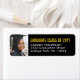 Lägg till en personlig för snyggt till college eller high school tillkännagivande för studenten och inbjudningar med anpassningsbar fotosvart, guld och vit returetiketter. Alla formuleringar i den här mallen är enkla att anpassa. Utformningen av dessa klistermärken har en valfri bild och en enkel, modern, minimalistisk typografi, år, namn och returadress. Observera att guld-bokstäverna är tryckta gult färg, inte metallfolie. Gör en elegant till inbjudan och tackkort. Gratulerar till Grad!