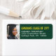 Lägg till en personlig för snyggt till college eller high school tillkännagivande för studenten och inbjudningar med anpassningsbar fotogrönt och guld returetiketter. Alla formuleringar i den här mallen är enkla att anpassa. Utformningen av dessa klistermärken har en valfri bild och en enkel, modern, minimalistisk typografi, år, namn och returadress. Observera att guld-bokstäverna är tryckta gult färg, inte metallfolie. Gör en elegant till inbjudan och tackkort. Gratulerar till Grad!