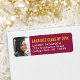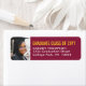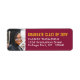 Lägg till en personlig i snyggten till college eller high school tillkännagivande för studenten och inbjudningar med anpassningsbar fototon och guld returetiketter. Alla formuleringar i den här mallen är enkla att anpassa. Utformningen av dessa klistermärken har en burgundröd bakgrund, en valfri bild och en enkel, modern, minimalistisk typografiklass, år, namn och returadress. Observera att guld-bokstäverna är tryckta gult färg, inte metallfolie. Gör en elegant till inbjudan och tackkort. Gratulerar till Grad!