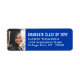 Lägg till en personlig för snyggt till college eller high school tillkännagivande för studenten och inbjudningar med anpassningsbar fotofoto, blå och vit returetiketter. Utformningen av dessa klistermärken har en valfri bild och en enkel, modern, minimalistisk typografiklass, år, namn och returadress. Gör en elegant till inbjudan och tackkort.