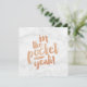 Gratulerar till en person som har gått ut med citatet: "I fickan!" Med färgad av kopparhandtag och trendig av marmorbakgrund.