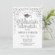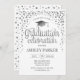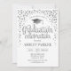Inbjudan till studentfest med Konfetti-Elegant, modern, enkel design i vitt med faux glitter silver och skriptteckensnitt. Perfekt för en elegant i party.
