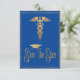 Faux guld-format med blå bakgrund skapar ett klassiskt modernt studenten-kort för att spara datumkortet. Perfekt för student att avsluta sina studier på läkarmottagningen, avtjäna sin sjuksköterskeexamen, nyfikningsceremoni och professioneller inom vårdbranschen. Om du inte sparar datumet i Doktor eller studenten finns det en faux guld caduceus-symbol tillsammans med en studentmössa. Skicka en studenten spara datumkortet till din familj och dina vänner.