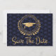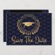 Jag tycker om att designa konstverk för studenten. Detta är underbart och unikt konst deco stil med elegant klassisk guld, svart och blå färg. Spara datum meddelande-kort. Modern stil. Lägg till ditt eget meddelande på kortets baksida med ge uppgifter till din familj och dina vänner för att spara datumet för en ceremoni, ett evenemang, ett evenemang, party eller ett annat tillfälle. Logotyp stil har löv, stjärnor och en studentmössa. Grattisar till student.