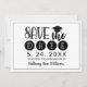 Meddela din studenten till din familj och dina vänner med den här eleganten spara datumkortet. Den här designmallen har en modern typografisk design i svart på vitt som accentueras av en studentmössa. På vykortets framsida står "Spara datum för att närvara studenten" i ett modernt skript med datum och namn för att du ska kunna anpassa dig. På baksidan av vykortet finns mer information om studenten, inklusive en gruppinbjudan till dig att anpassa. Gratulerar på studenten! Designad av konstnären ©Susan Coffey.