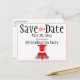 Skicka det här minimalistiska rött och grått "Spara datumet" till studenten för din skola på det här mallens vykort. Anpassa texten i mallens fält för fram- och tillbaka eller klicka på anpassa för att välja det teckensnitt stil, storleka och färg som du vill använda.