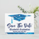 Vackert, enkelt modernt studenten sparar datumkortet för att skicka till familj och vänner. Har blått och vitt vattenfärgssnurrande utseende. Underbart kort för att spara ett datum för studenten.