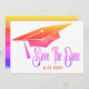 Vackert, enkelt modernt studenten sparar datumkortet för att skicka till familj och vänner. Har en studentmössa med regnbågsfärgsutseende. Underbart modernt och enkelt kort för att spara ett datum för studenten.